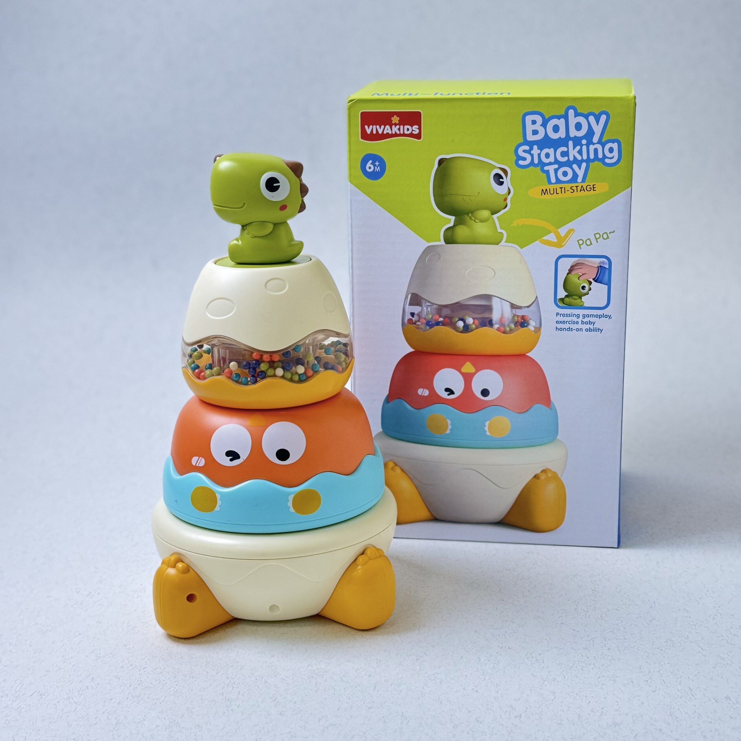 اسباب بازی دارای جغجغه ای در برج های آن است که کودک را سرگرم کرده و به مادر در بازی کردن با نوزاد خود کمک و با رنگبندی جذاب نوزاد را به خود جذب میکند.