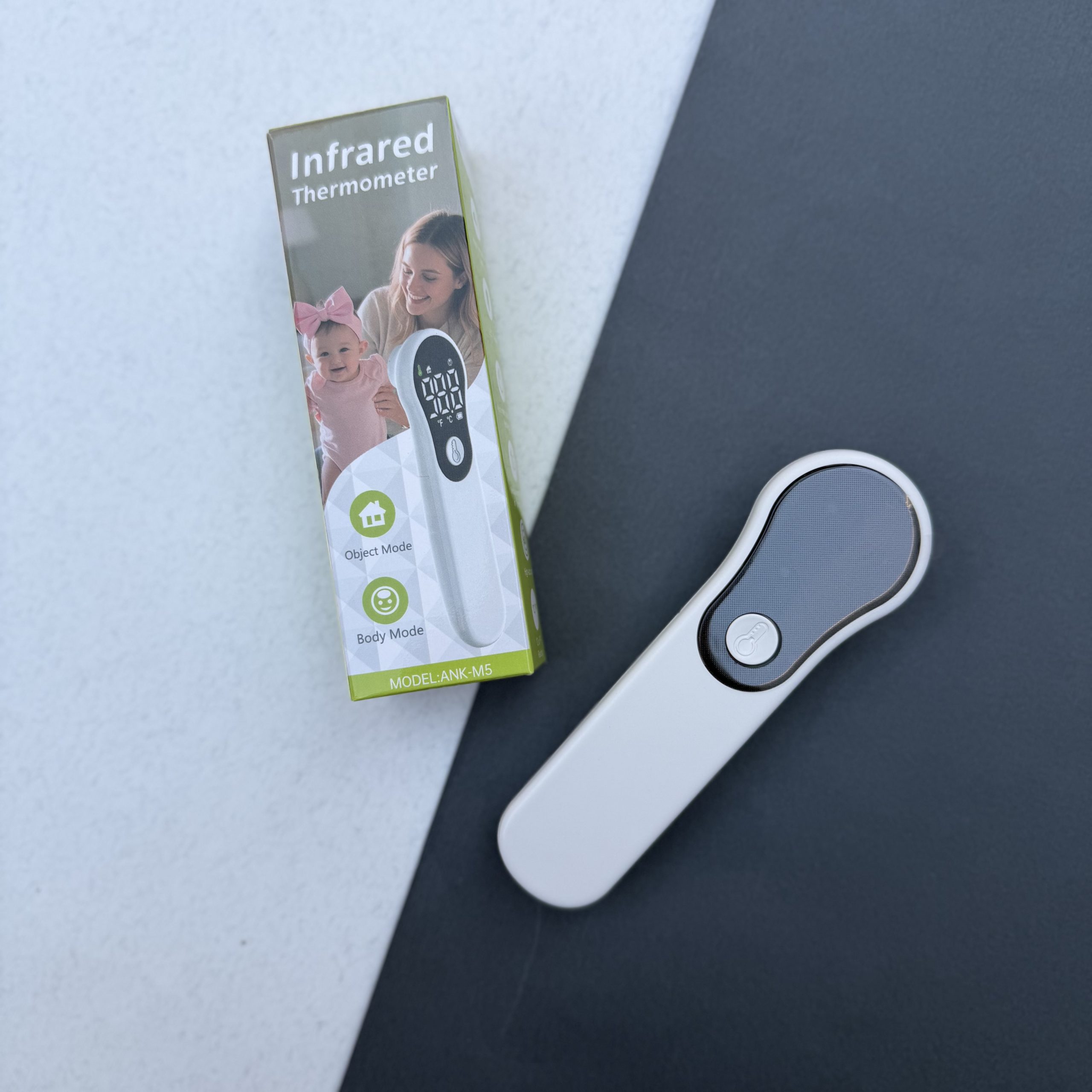 دستگاه ترمومتر مادون قرمز جهت سنجش دمای بدن انسان در همه سنین طراحی شده است .بدون تماس با بدن شخص دمای بدن را ازطریق پیشانی اندازه گیری می نماید  این محصول 10حافظه دارد و امکان تغیر حالت از فارنهایت به سانتی گراد را دار می باشد.