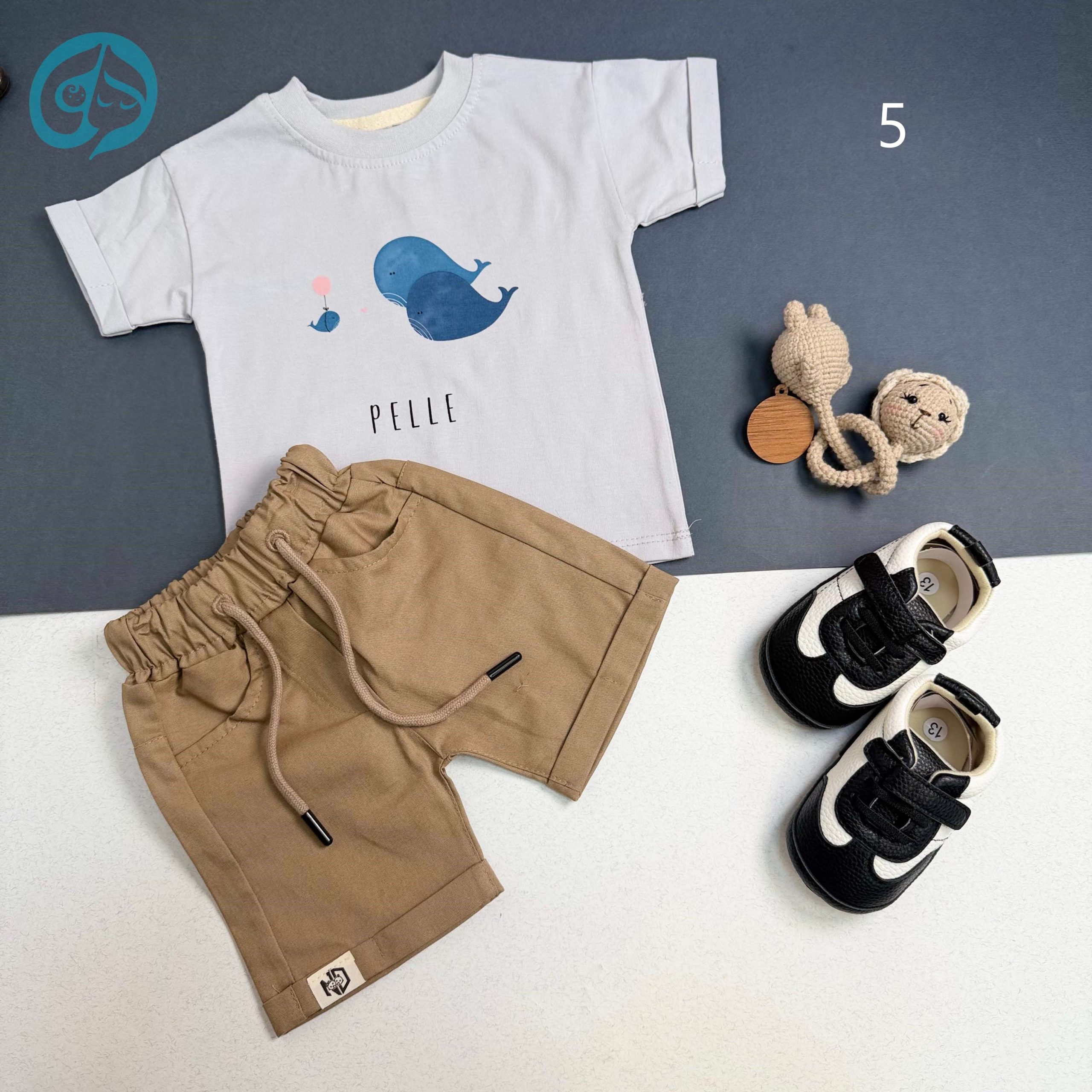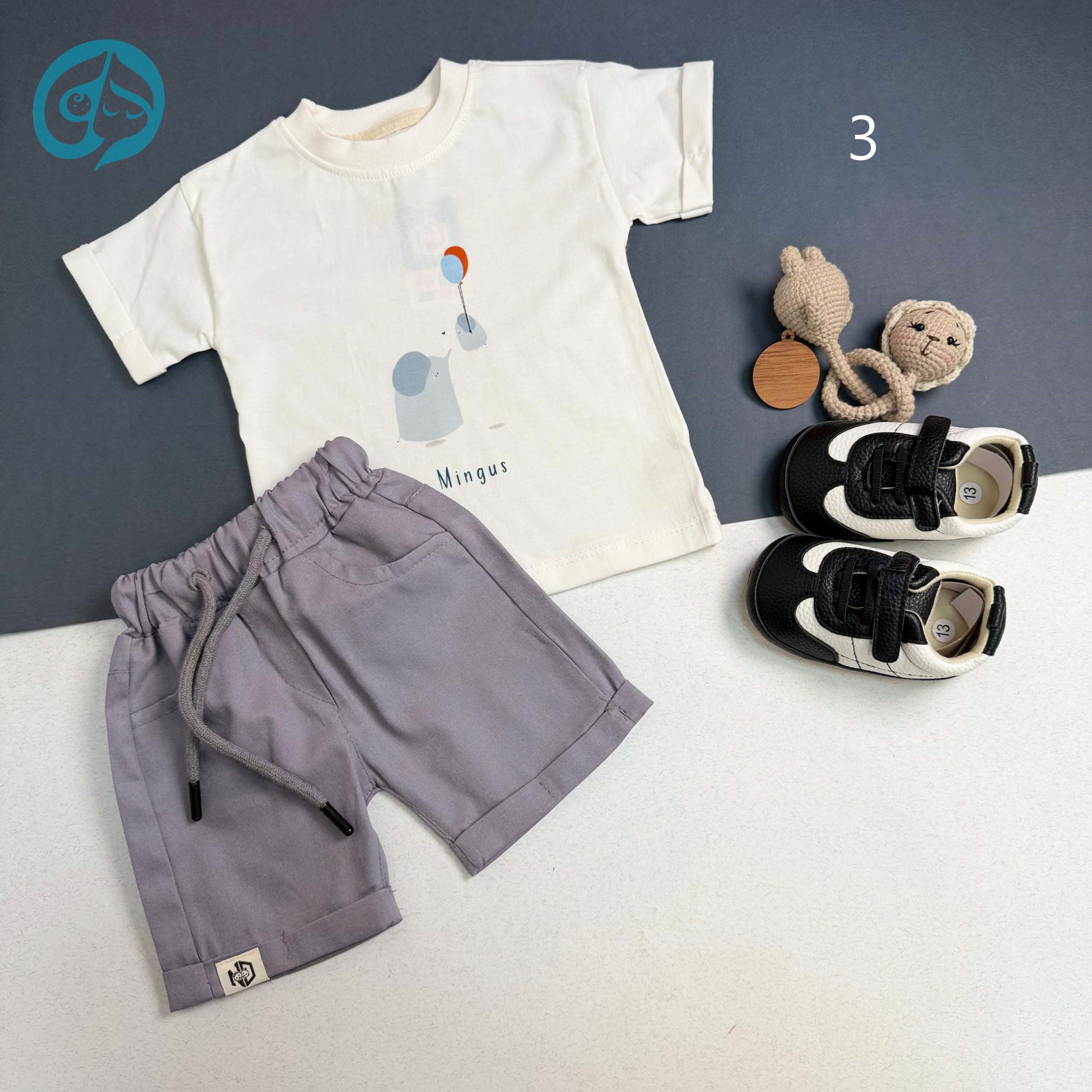 تیشرت شورت تمام پنبه با شورت کتان برند نینی دوز