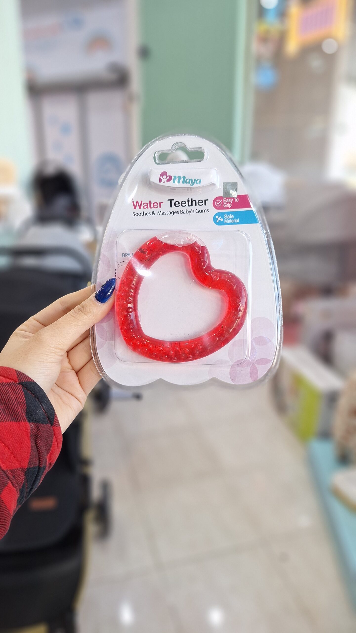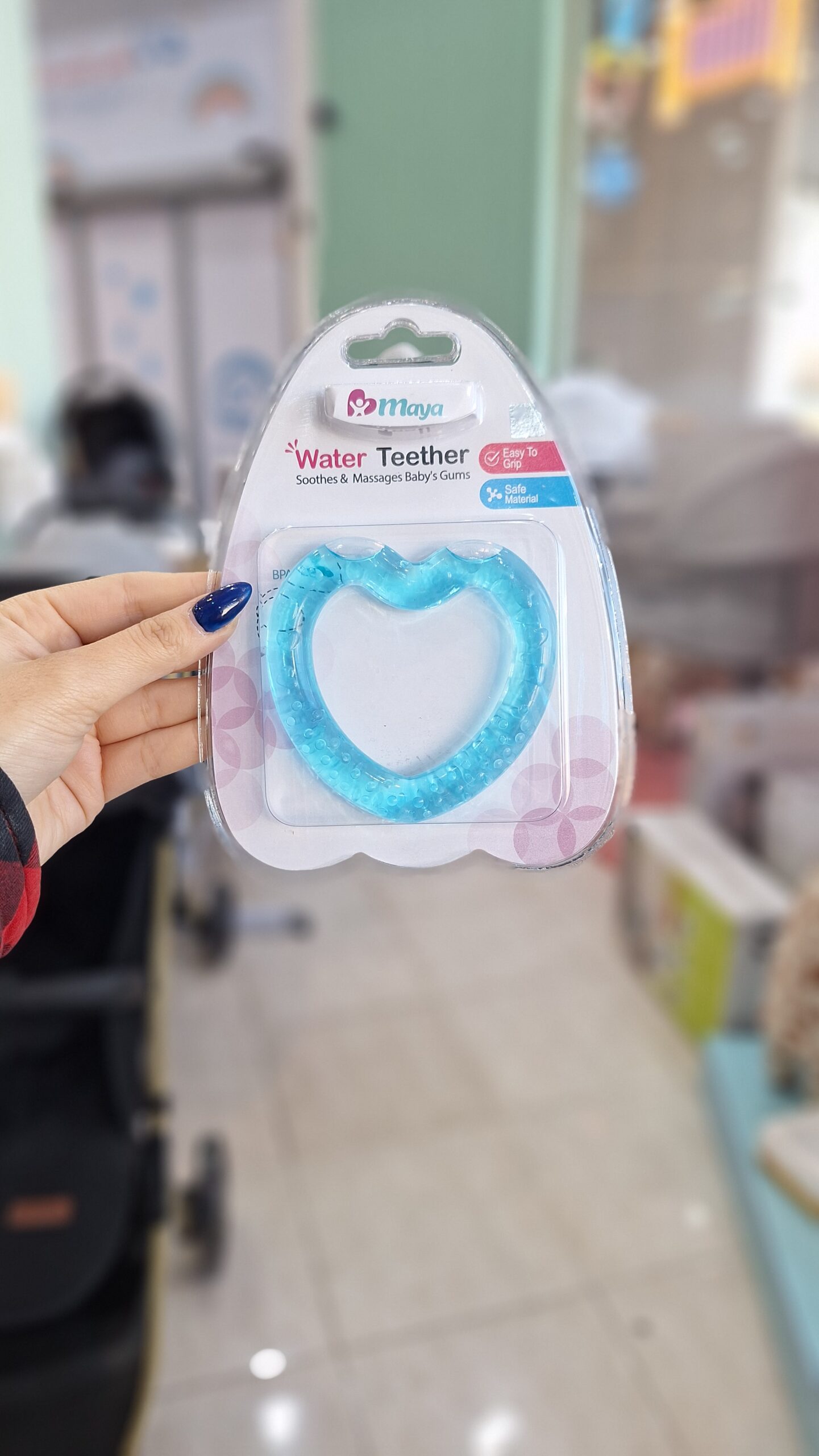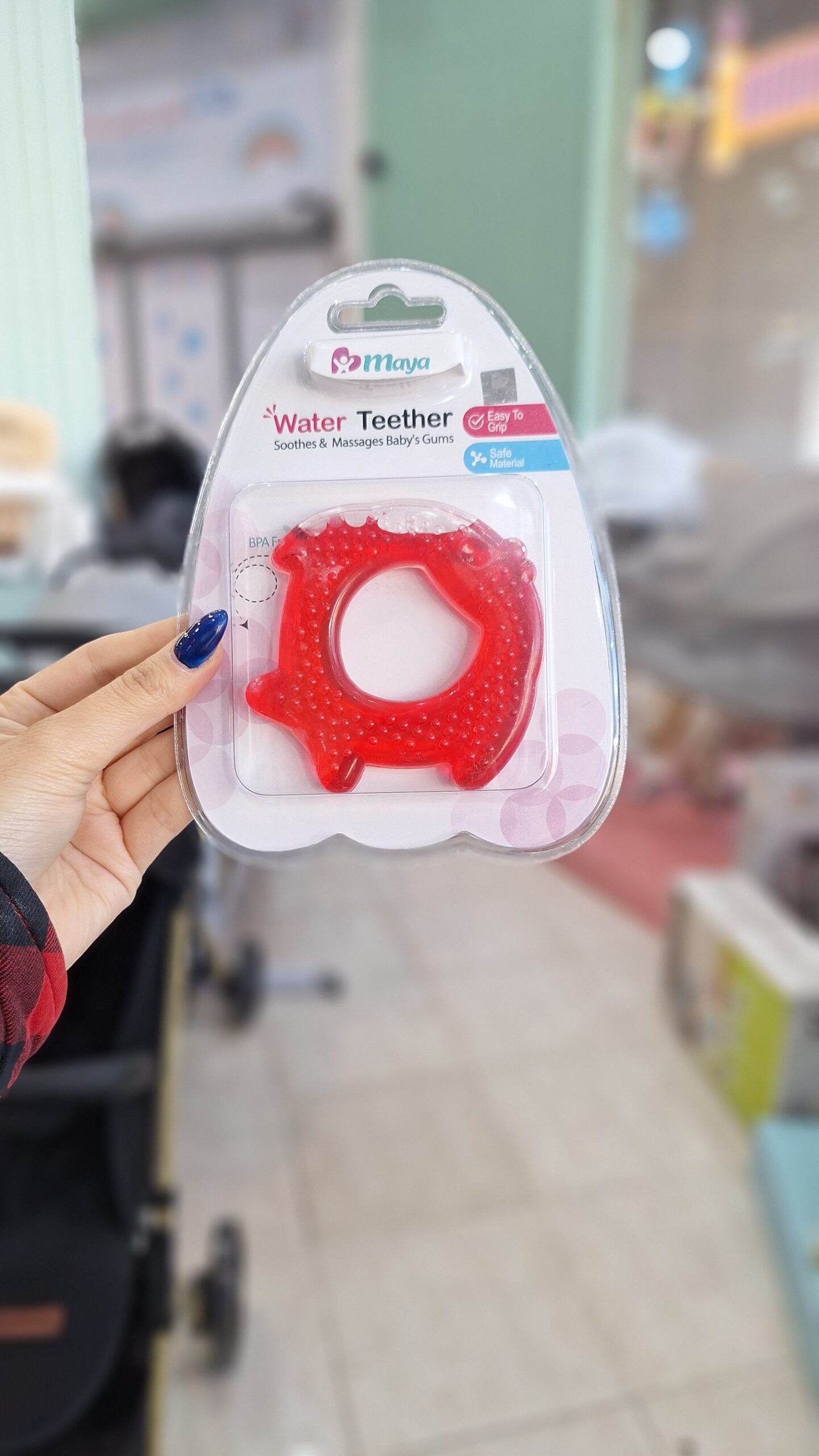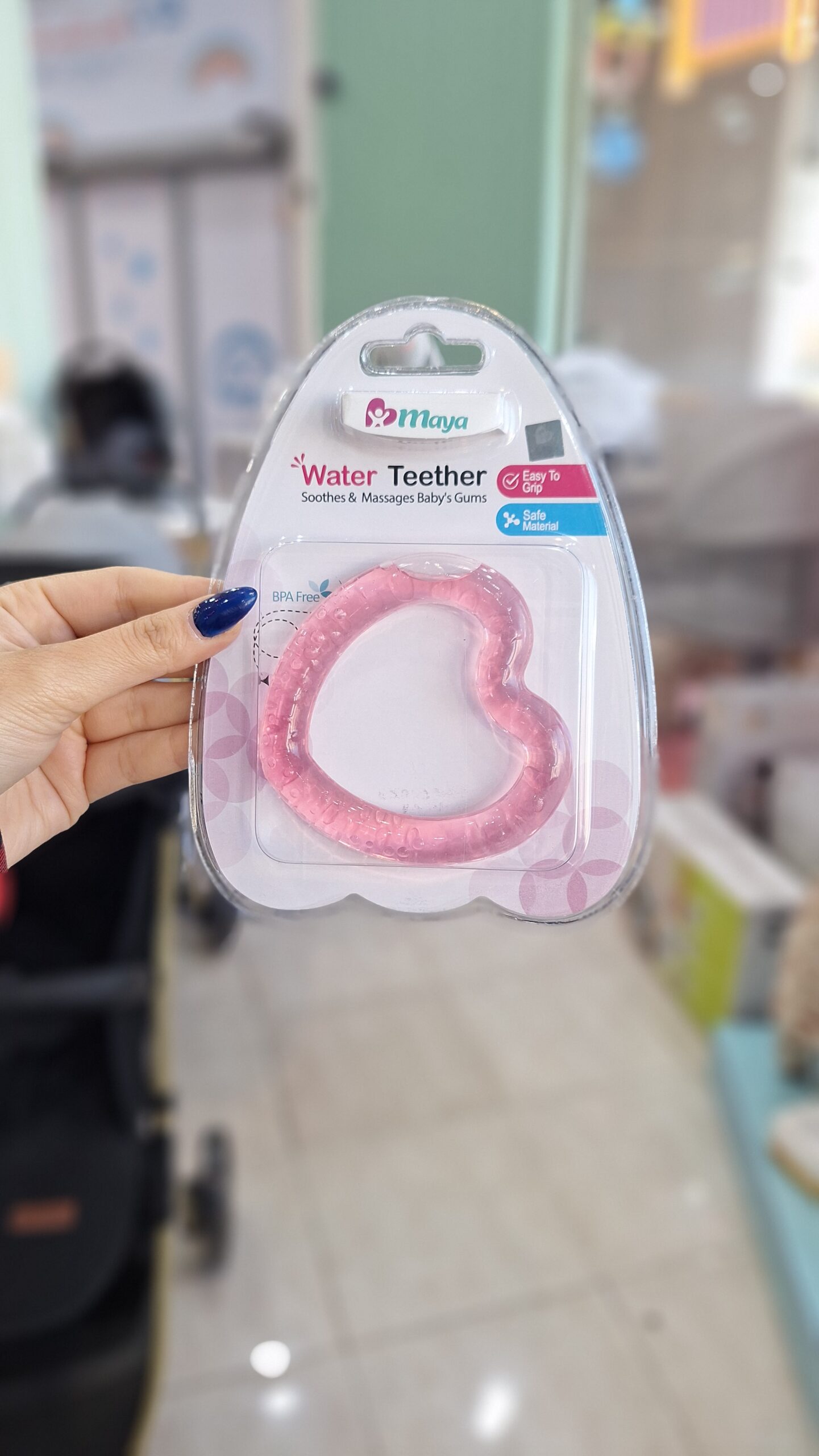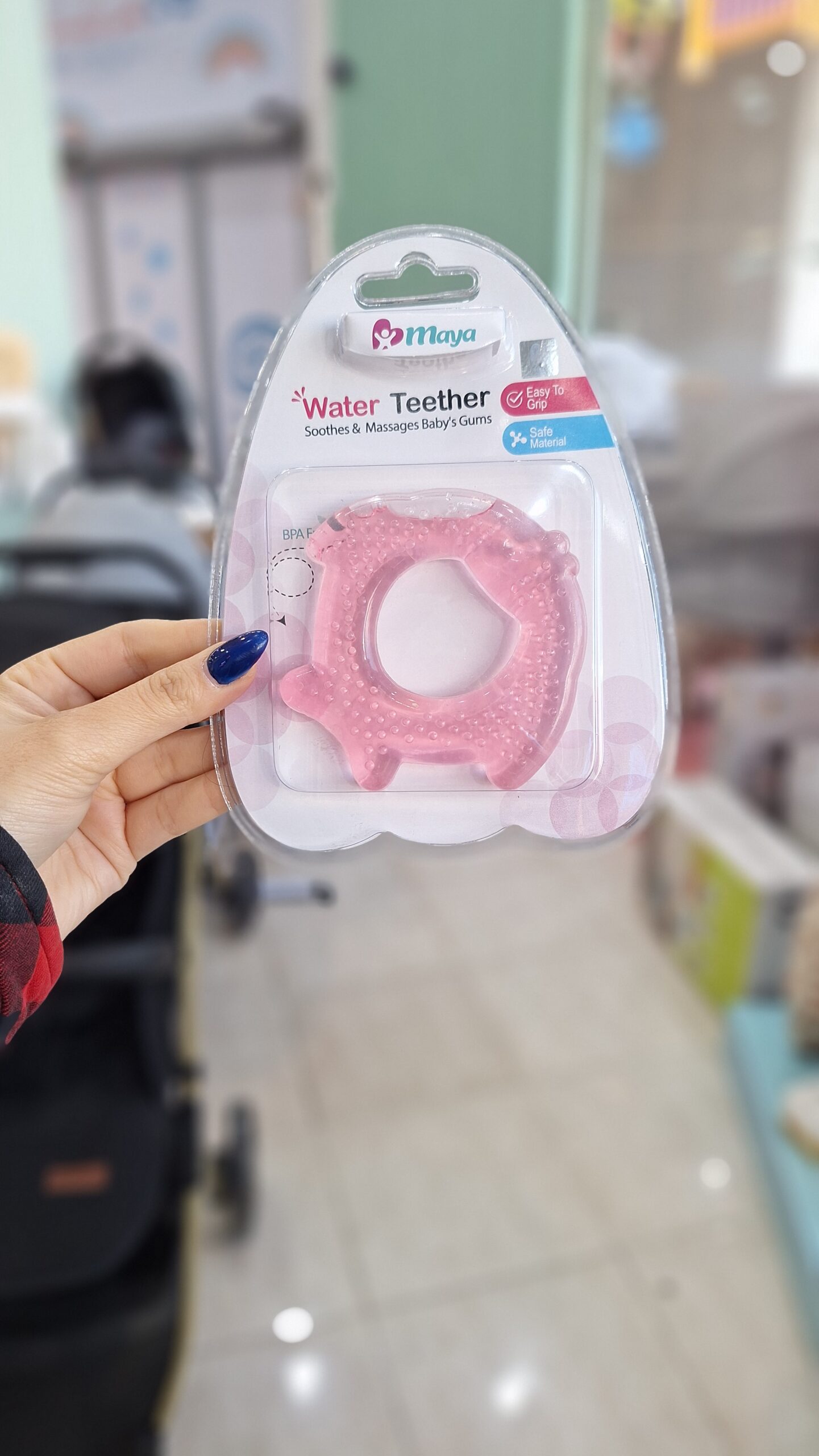 دندانگیر مایع دار مایا با طراحی ویژه مناسب برای از بین بردن خارش و درد لثه کودک در زمان رویش دندان ها تولید و ساخته شده است. مواد استفاده شده در ساخت این محصول از نوع غذایی بوده و با استفاده از آب مقطر و رنگ خوراکی پر شده.