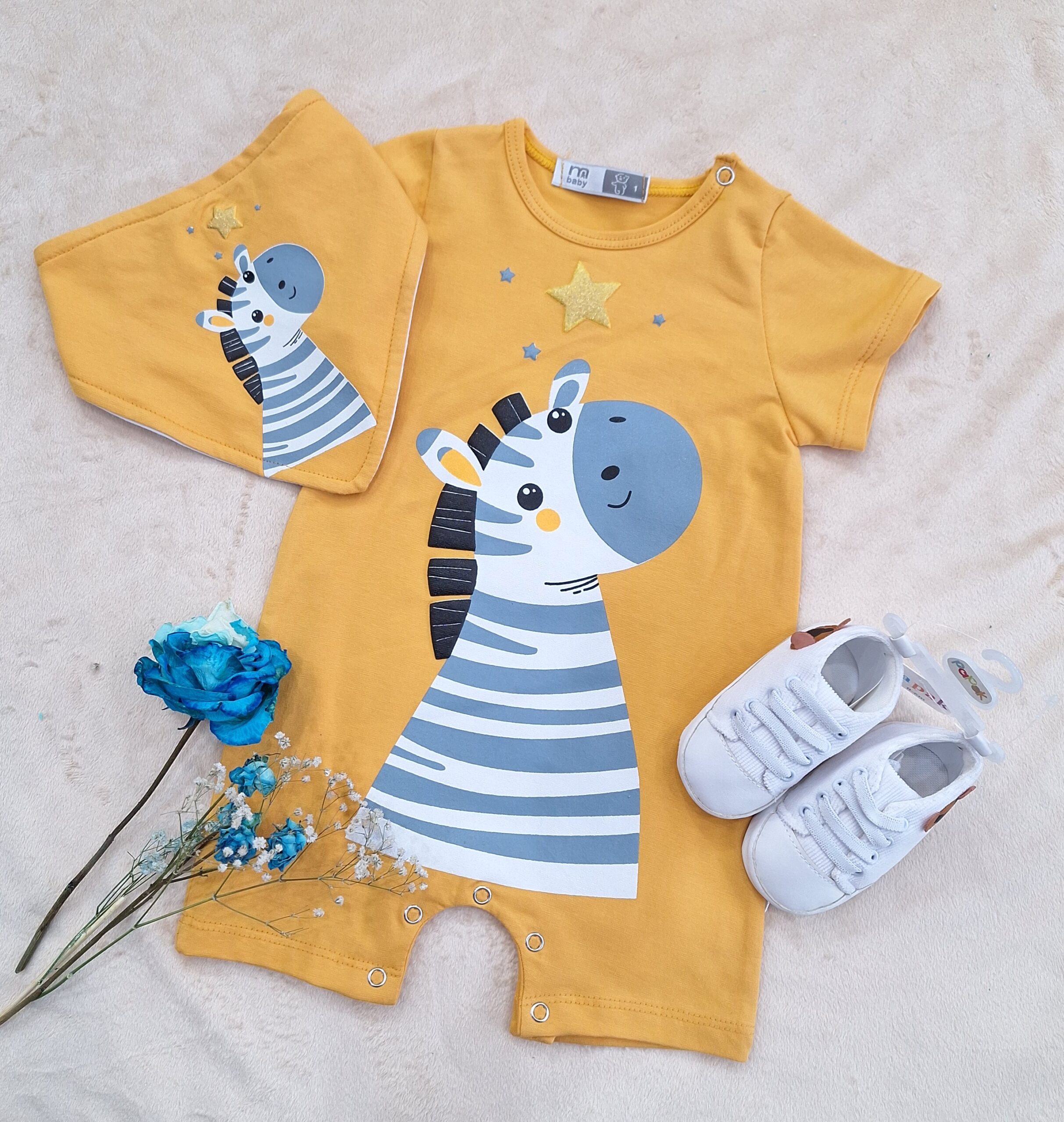 رامپر تمام پنبه با کیفیت همراه با دستمال گردن، برند مهری ماه که دارای چاپ زول بدون پوسته پوسته شدن و ترک خوردن است.🌺