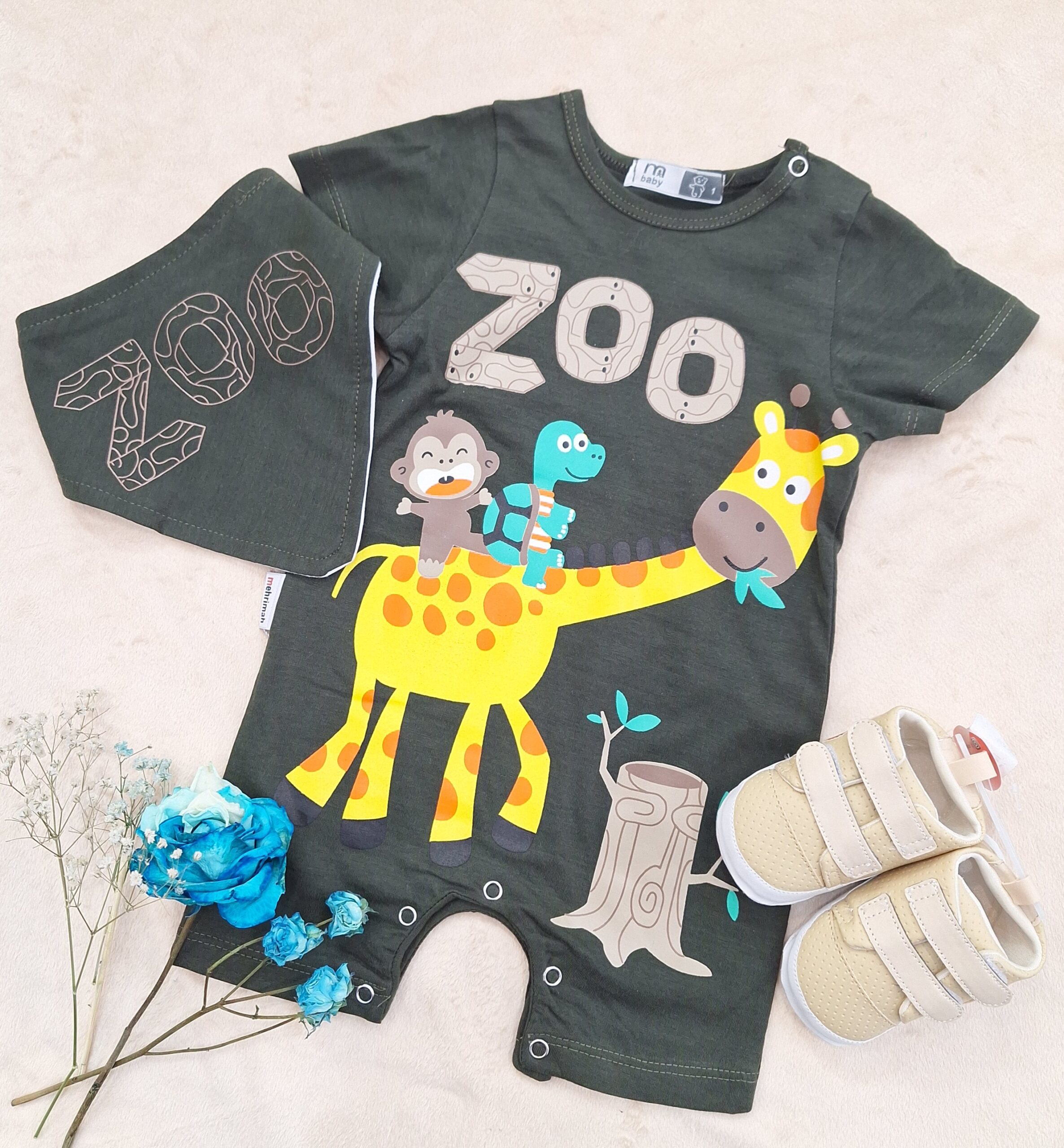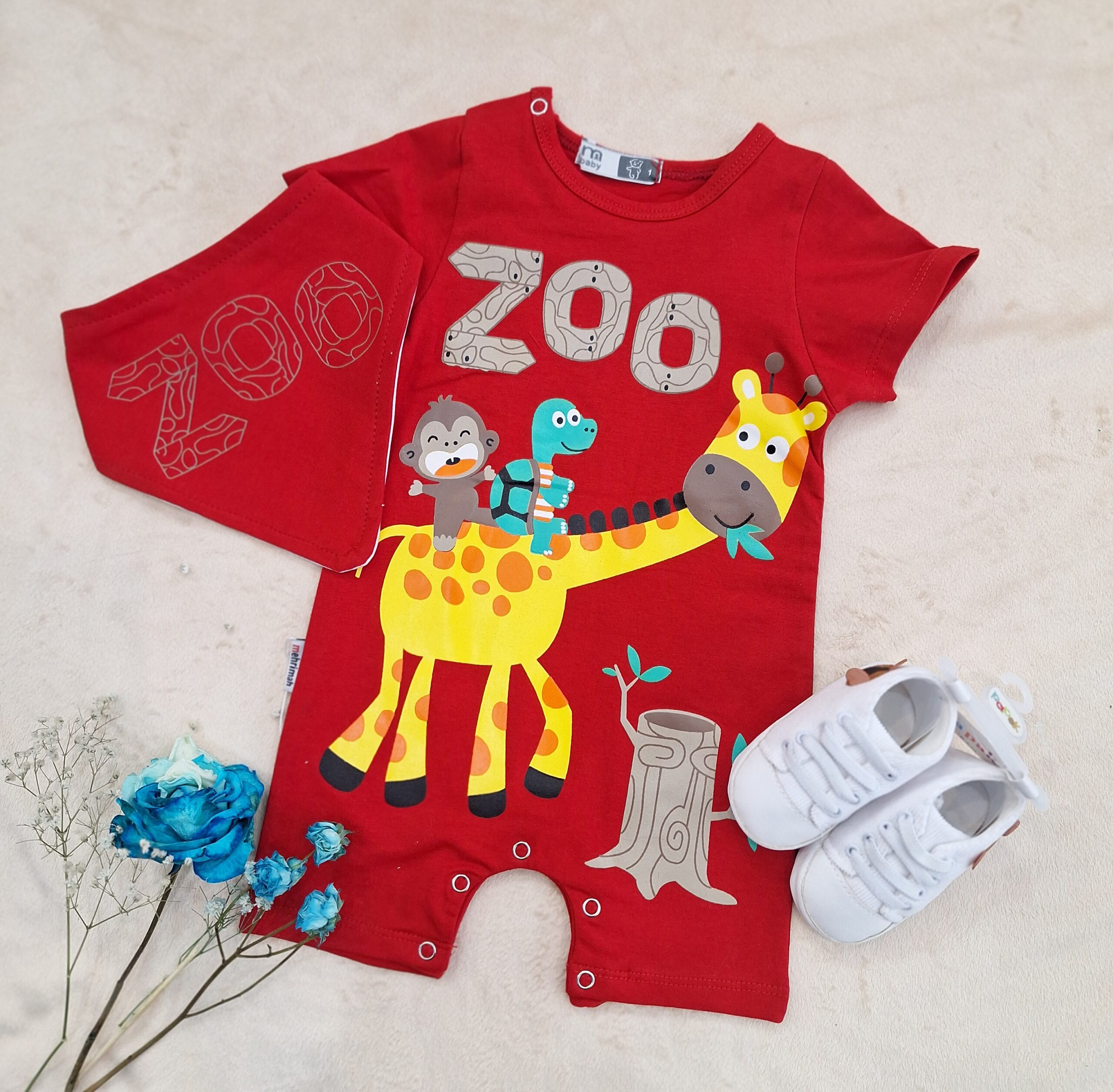 رامپر تمام پنبه با کیفیت همراه با دستمال گردن، برند مهری ماه که دارای چاپ زول بدون پوسته پوسته شدن و ترک خوردن است.🌺