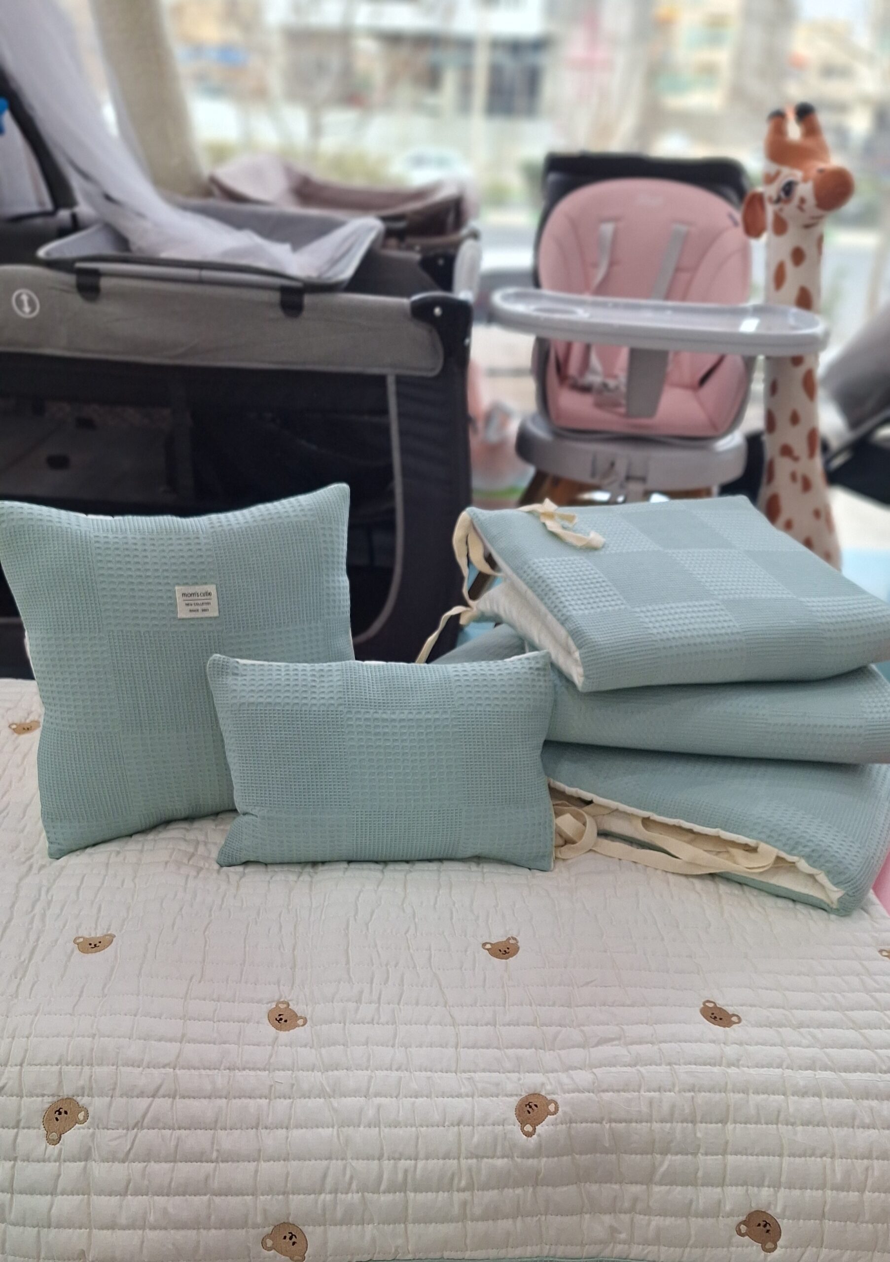 لحاف،ملحفه،یک عدد کوسن،بالش،یک عدد محافظ تخت بزرگ و دو عدد محافظ تخت کوچک است.🍀