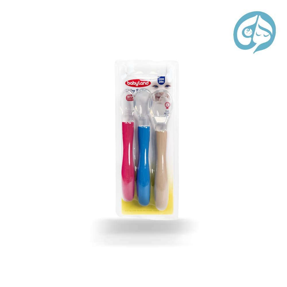 قاشق 3 عددی سیلیکونی بیبی لند مناسب برای نوزادان از 3 ماهگی به بالا .
