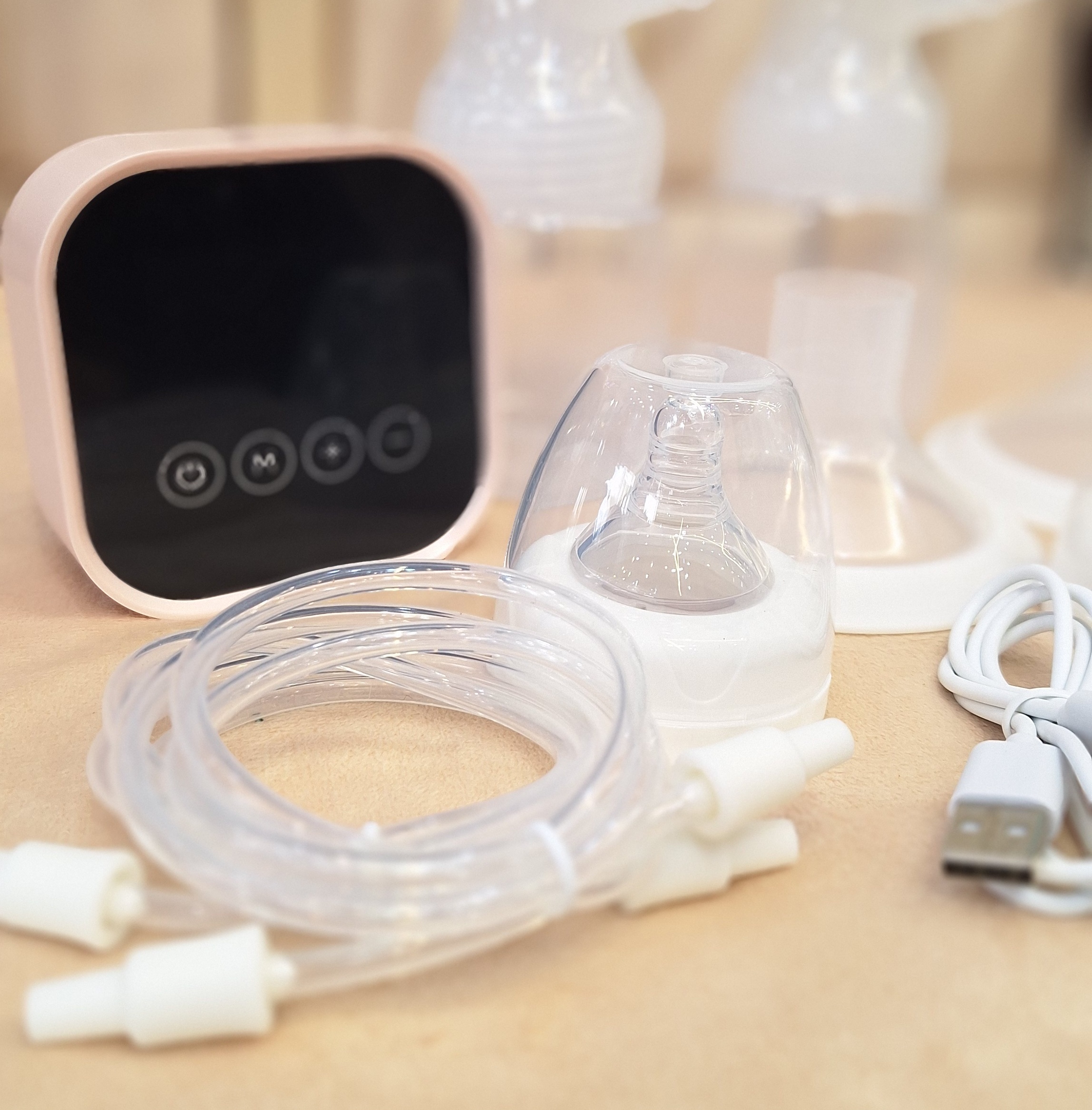*دارای دو مخزن برای نگهداری شیر / دو عدد سری برای اتصال به سینه مادر / دو عدد سر شیشه شبیه به سینه مادر و دارای سیم کابل برای شارژ.