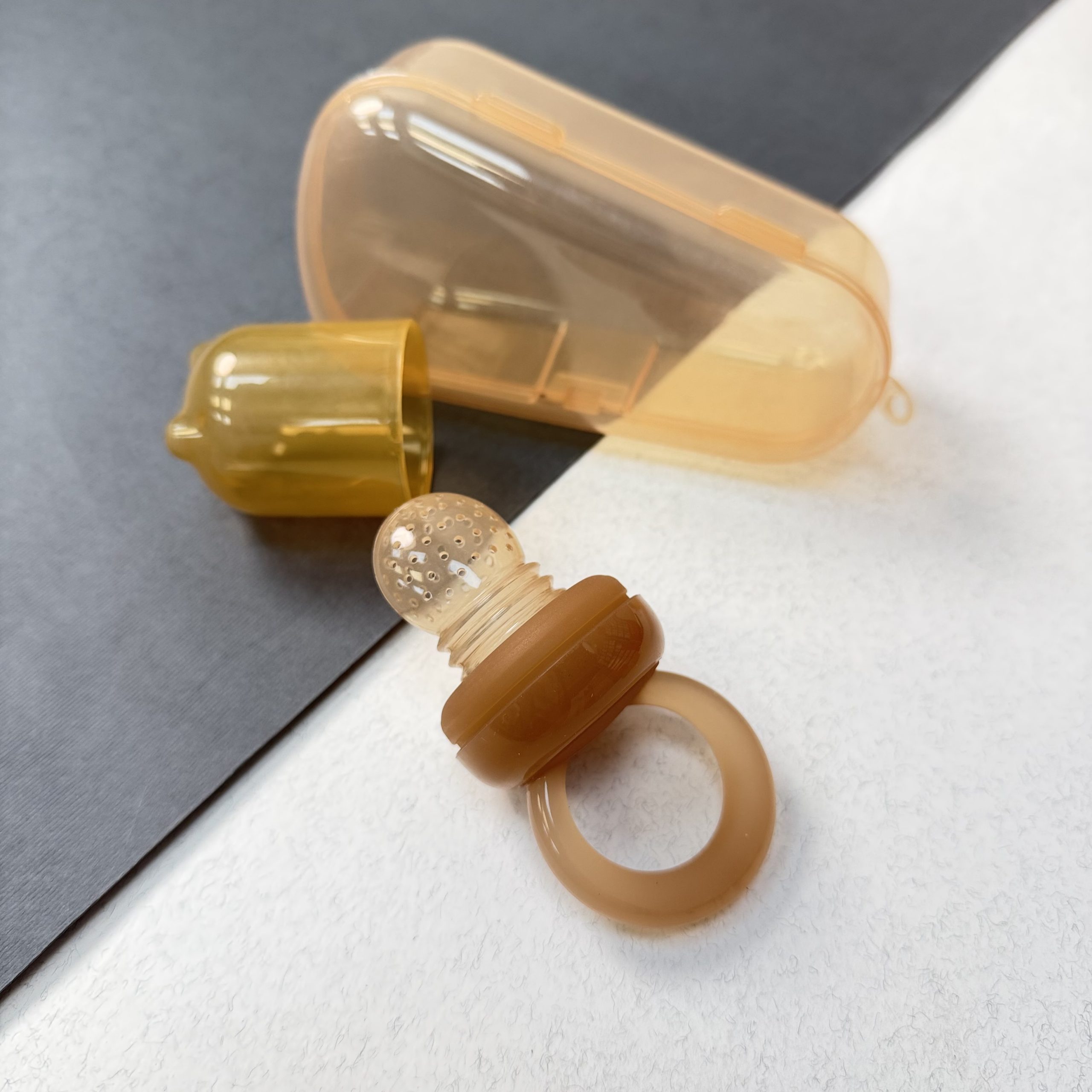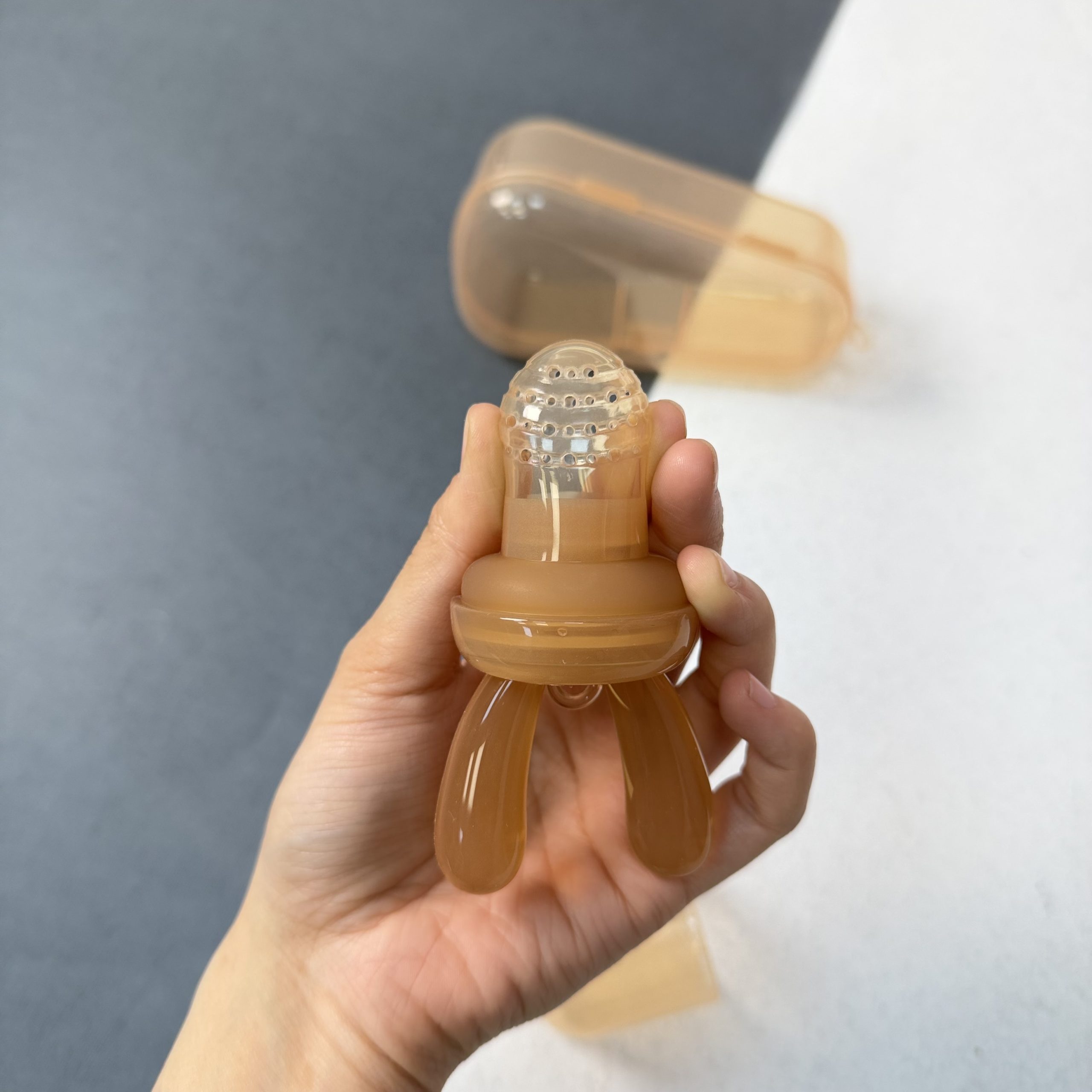 مکیدن و جویدن محفظه سیلیکونی، لثههای کودک را ماساژ داده و به تسکین خارش و درد ناشی از دندان درآوردن کمک میکند.