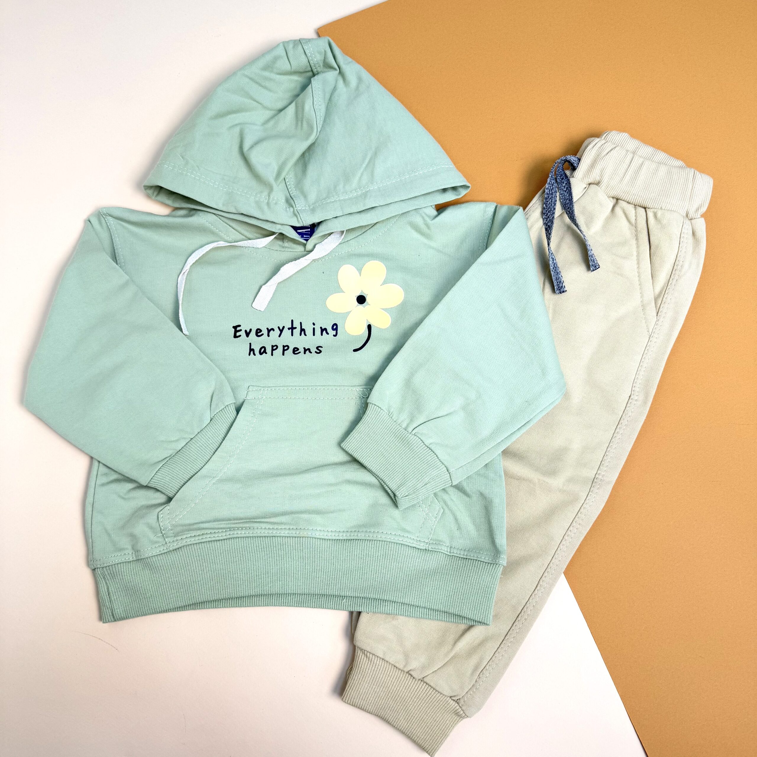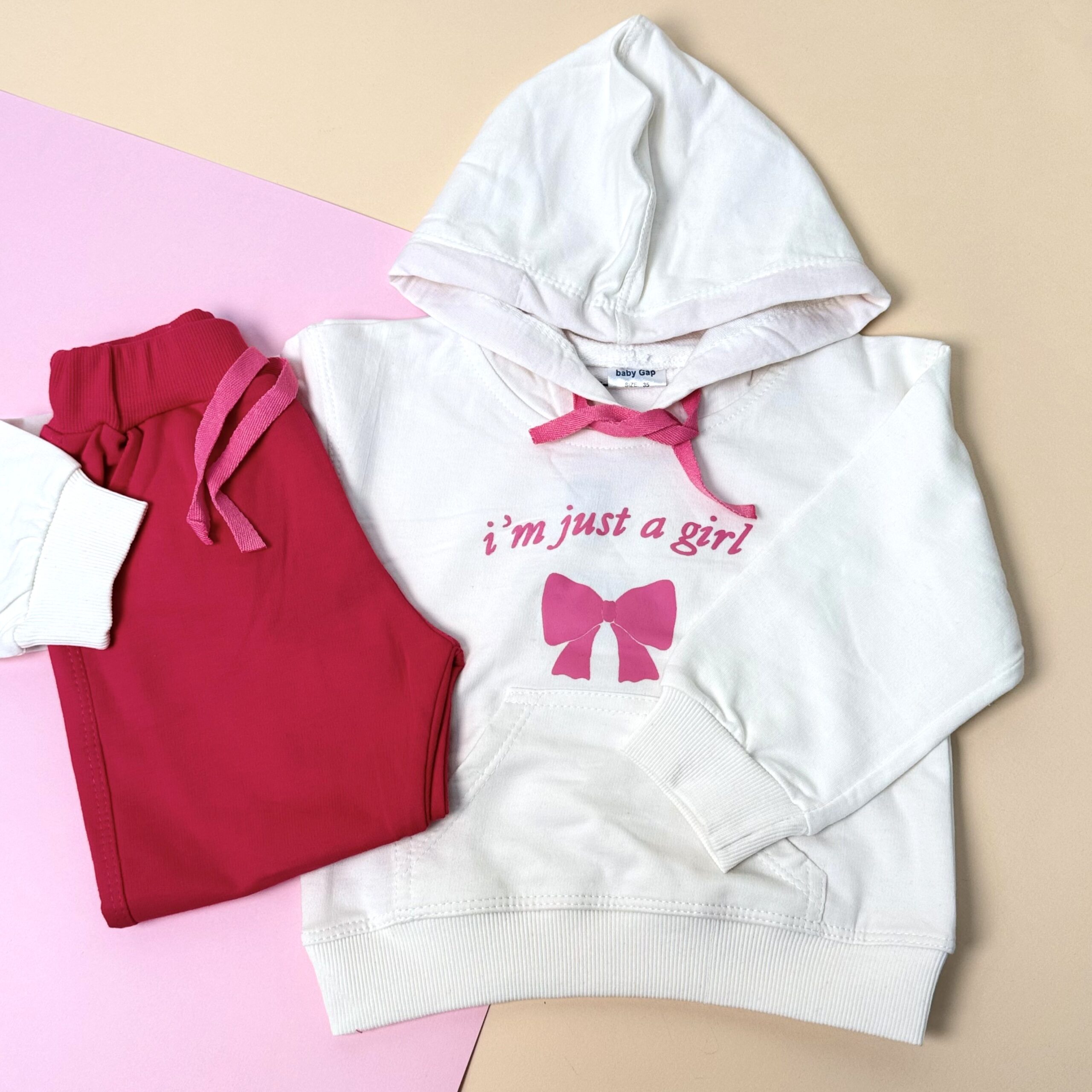 هودی شلوار دورس برند بیبی گپ همراه با کشباف کار شده در قسمت مچ پا و مچ دست ، مناسب برای فصل پاییز.🍂