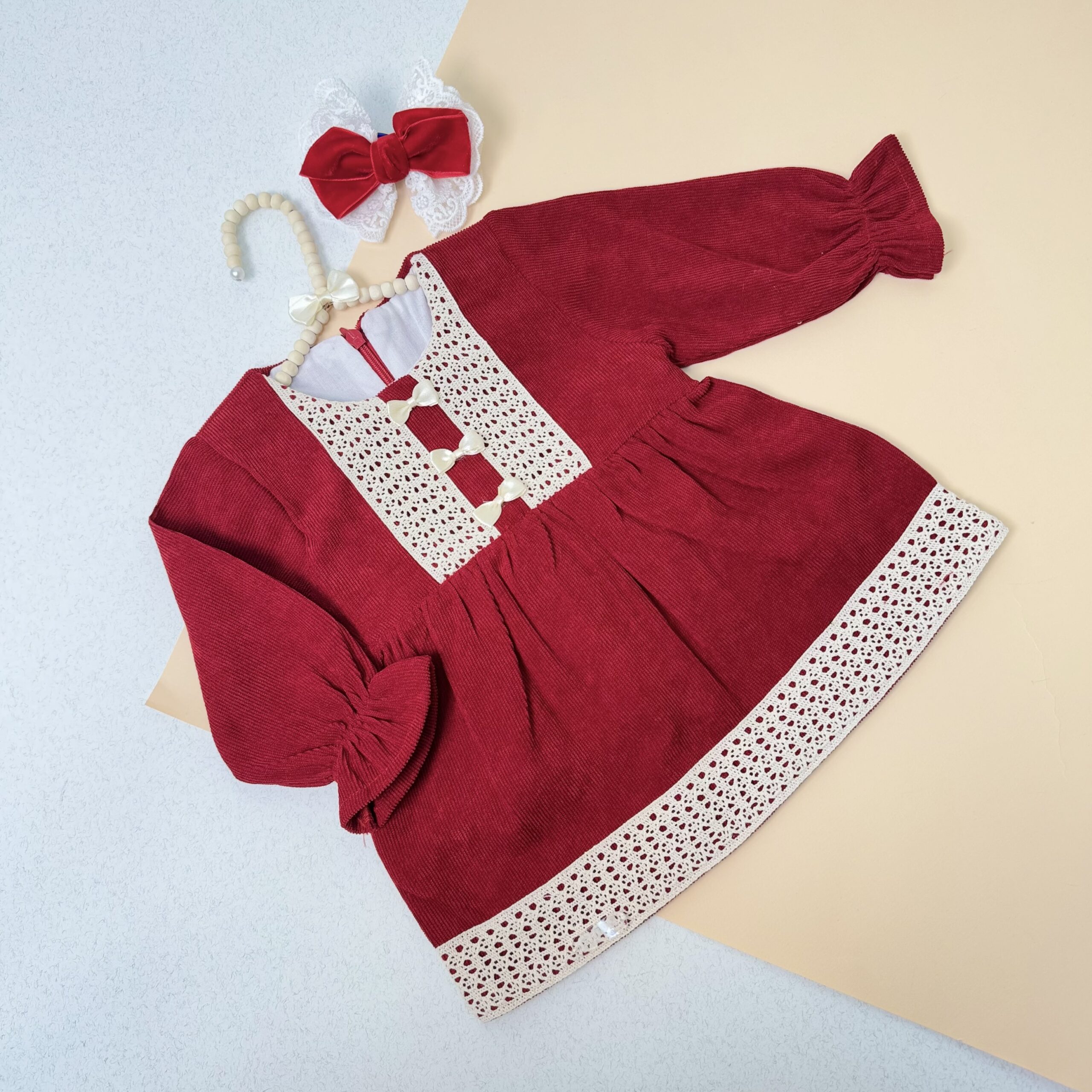 پیراهن دخترانه یلدایی پاپیونی