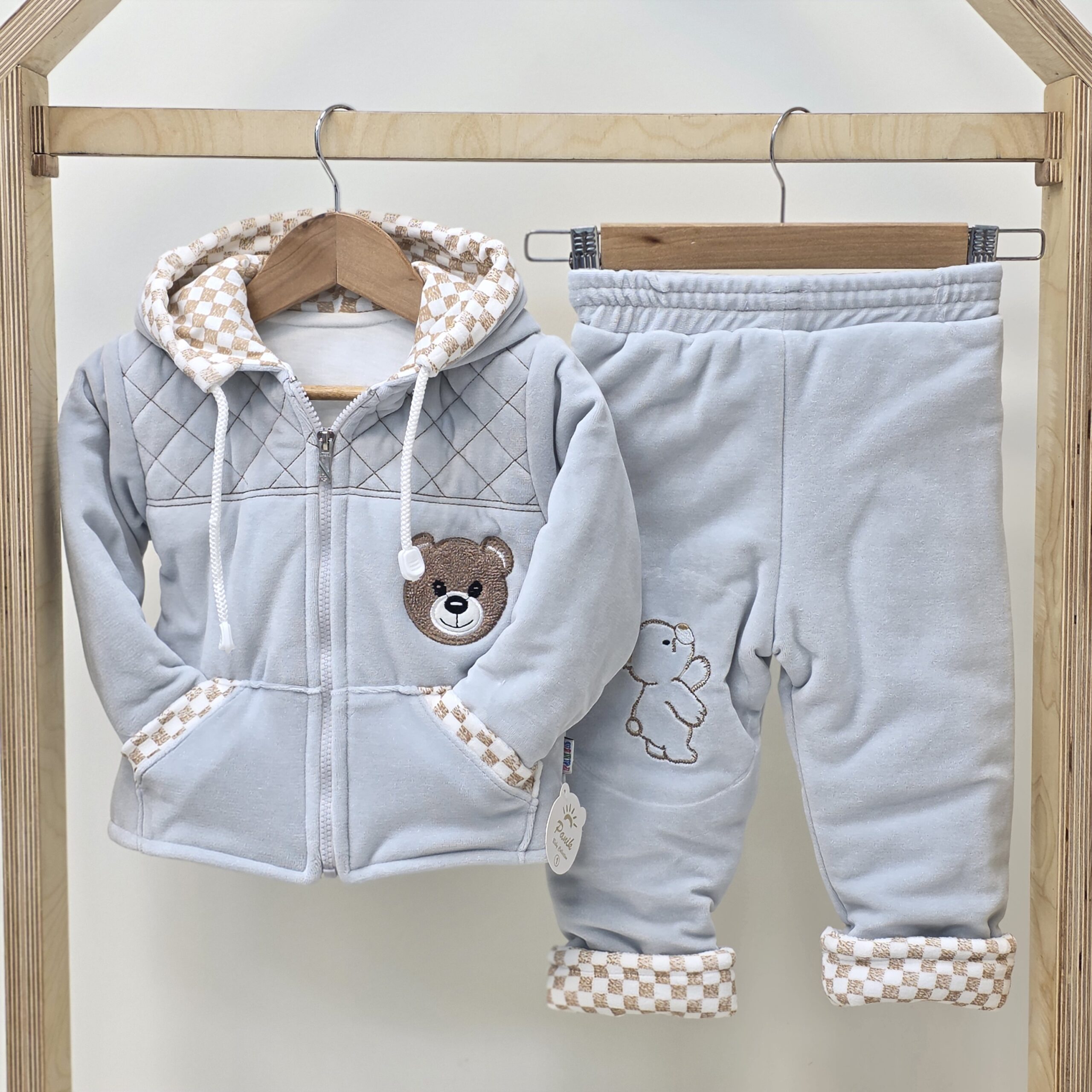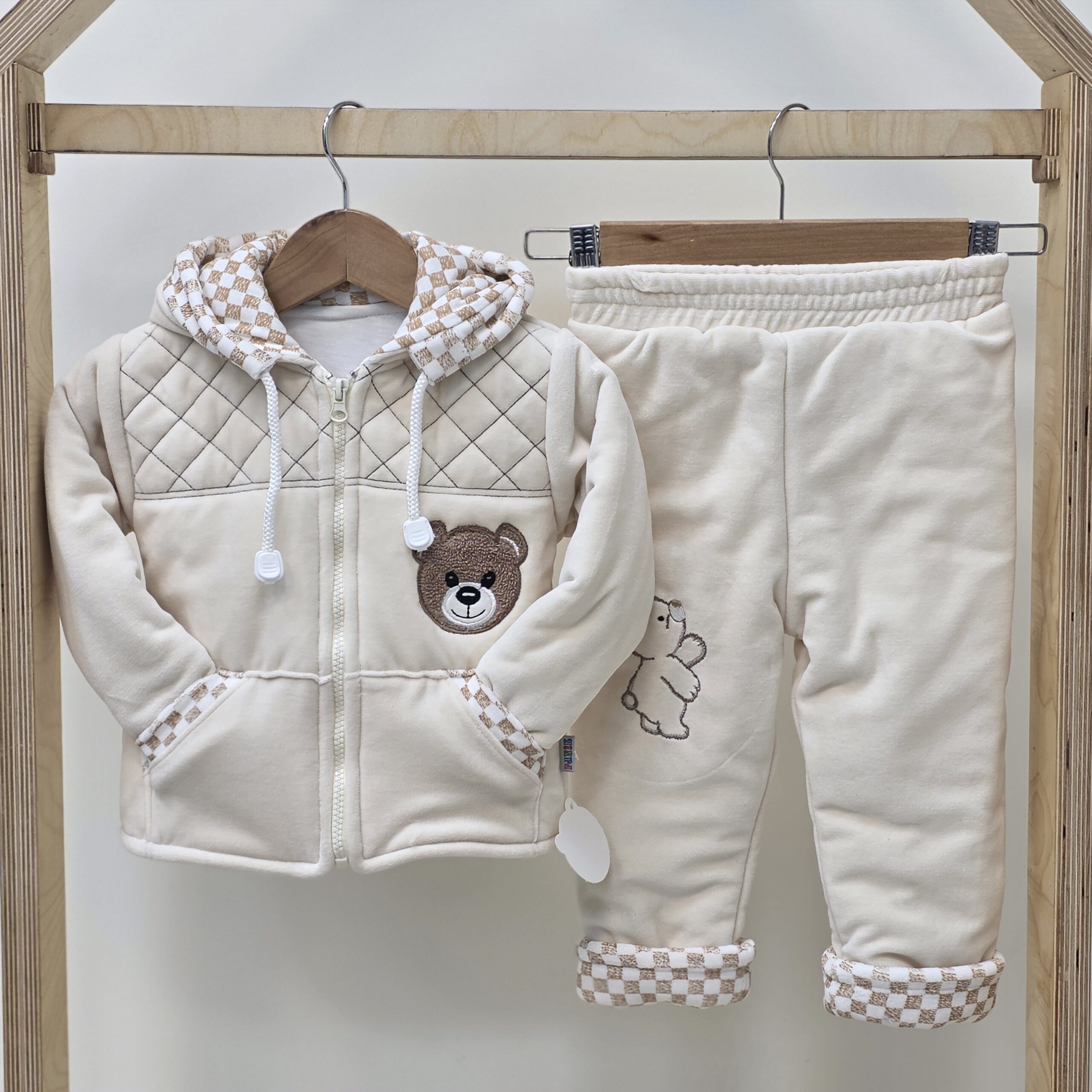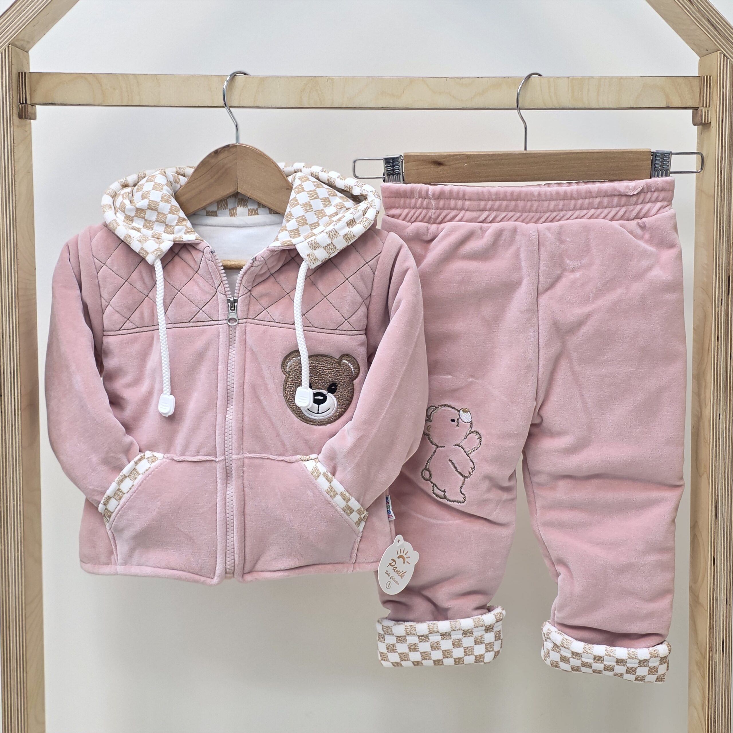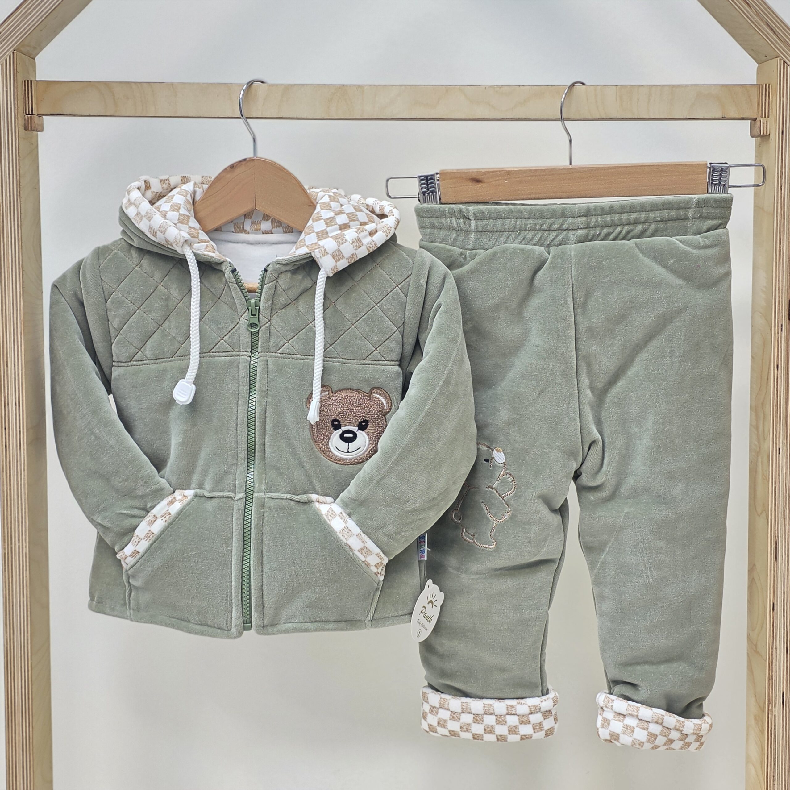 کاپشن شلوارمخمل ضخیم زمستانی که در قسمت جلویی زپ استفاده شده که برای استفاده راحتتر برای مادران مناسب هست.💕